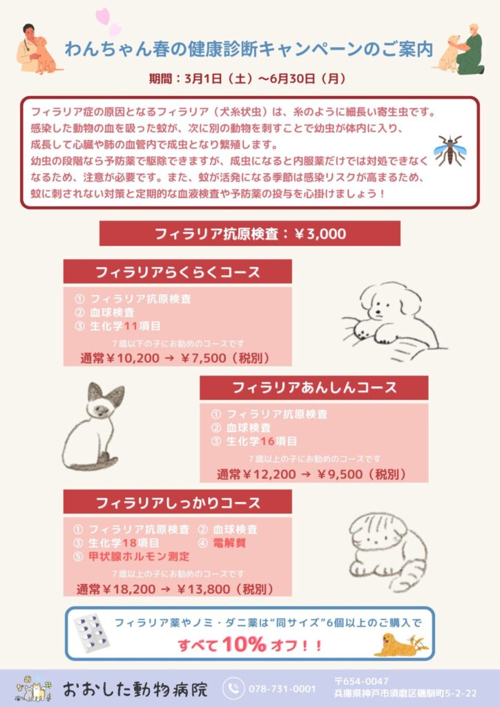この機会に、お得な価格でフィラリア予防と健康診断をぜひご検討ください。